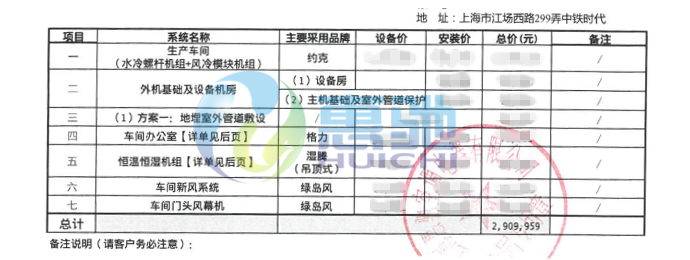 車間舒適節能系統配置表