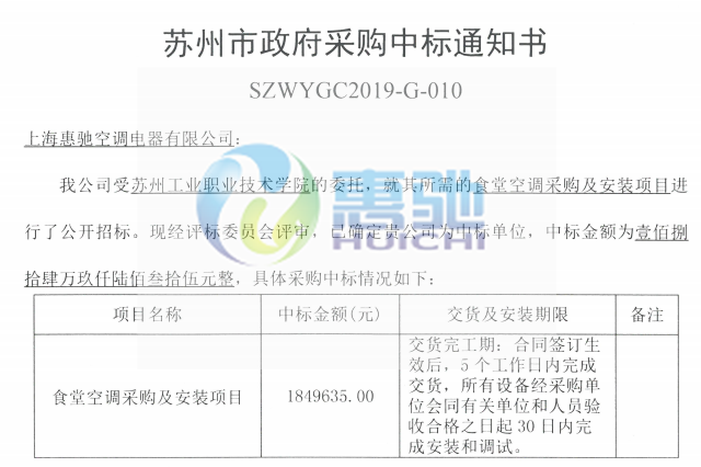 蘇工院空調(diào)項(xiàng)目中標(biāo)通知書(shū)