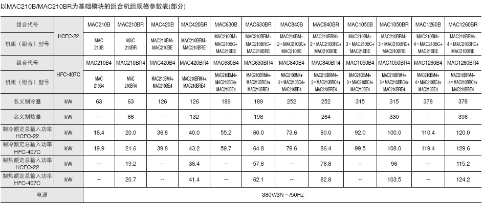■三種基本模塊單元,可實現(xiàn)1?10 個同冷量模塊自由組合。另有HFC-407C 環(huán)保制冷劑可供選擇。